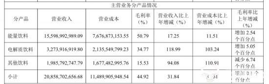 可以看出,東鵬飲料已構(gòu)建了多品類的產(chǎn)品矩陣,而集團(tuán)董事長(zhǎng)林木勤在致辭中表示,“‘東鵬特飲’銷售額登頂中國(guó)能量飲料行業(yè)首位,成為名副其實(shí)的中國(guó)能量飲料第一品牌”,此外公司“‘1+6’多品類戰(zhàn)略推進(jìn)首戰(zhàn)告捷,東鵬飲料邁進(jìn)了中國(guó)綜合性飲料企業(yè)行列”。